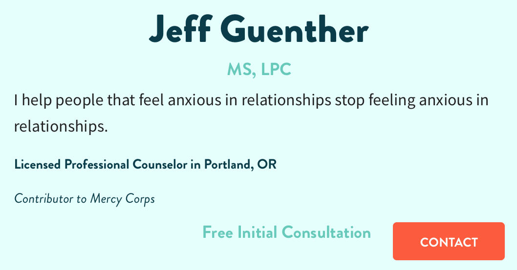 If you were feeling anxious in a relationship (and who isn’t??) you’d probably hit the contact button midway through reading that sentence. And if that sentence didn’t resonate with you, you might be like, “Okay cool. I’ll keep reading his profile.” It’s an intro that’s not going to scare anyone off. And it’s also an intro that’s going to attract a bunch of people that are currently having a freak out about their relationship. As long as you stay away from intros that are waaaaay too specific like, “I only help kleptomaniacs using psychodrama.” Or waaaay too general like, “I help everyone with everything!” then you’ll be good to go.